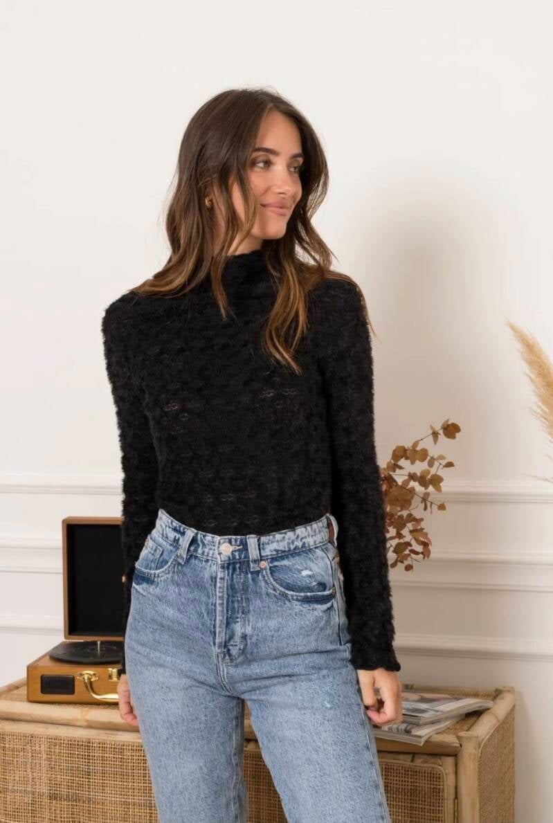 aansluitend en zacht fluffy print truitje met turtle nekje