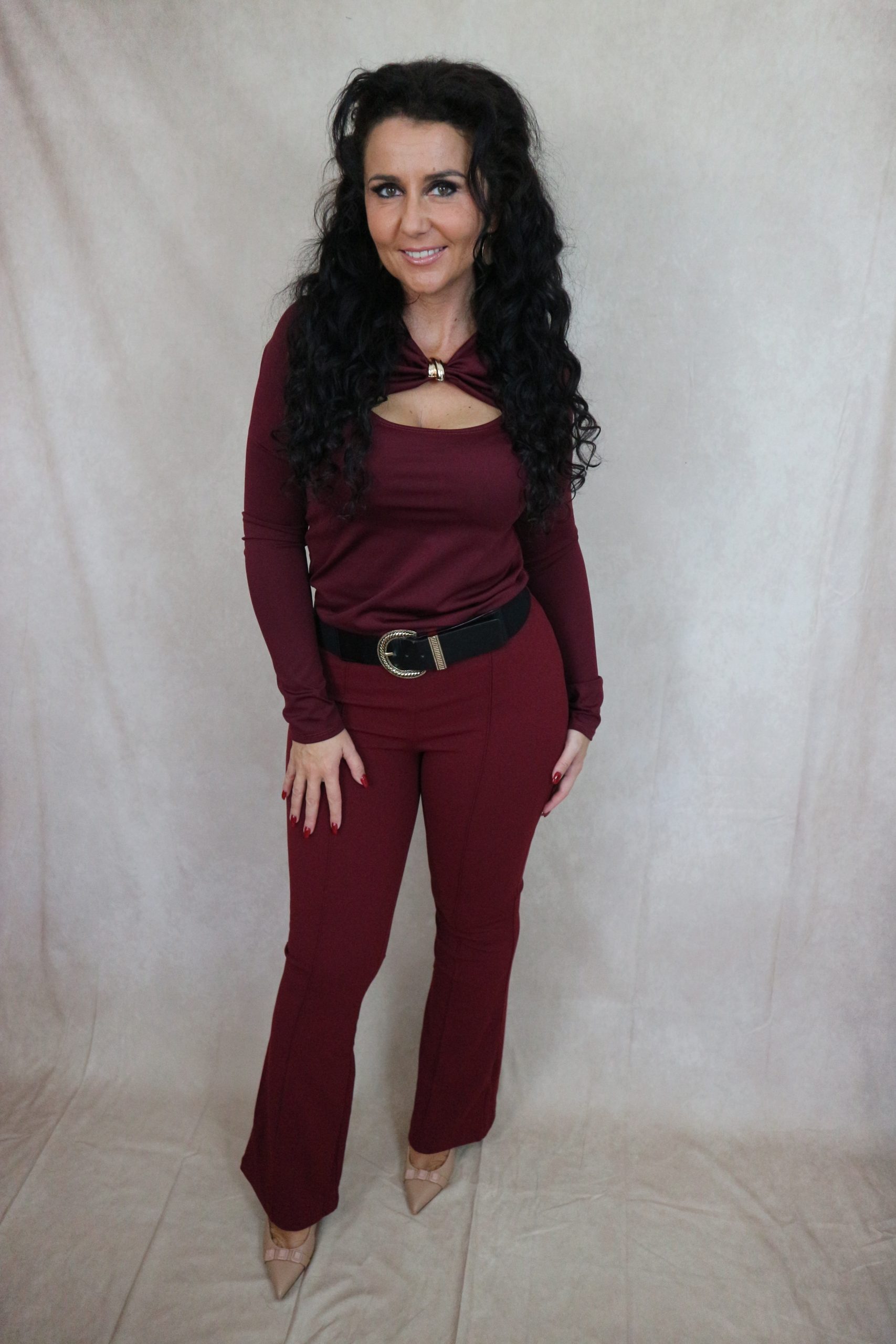 stretch flared pantalon – burgundy