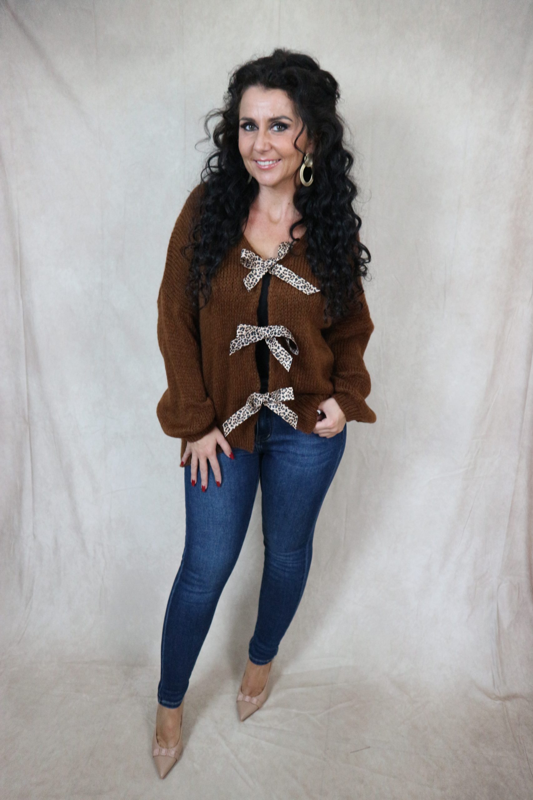 vest met panter strikjes – bruin