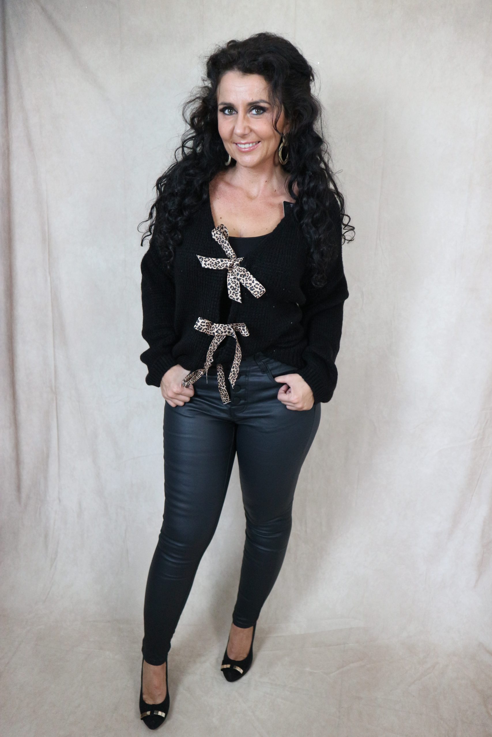 vest met panter strikjes – zwart